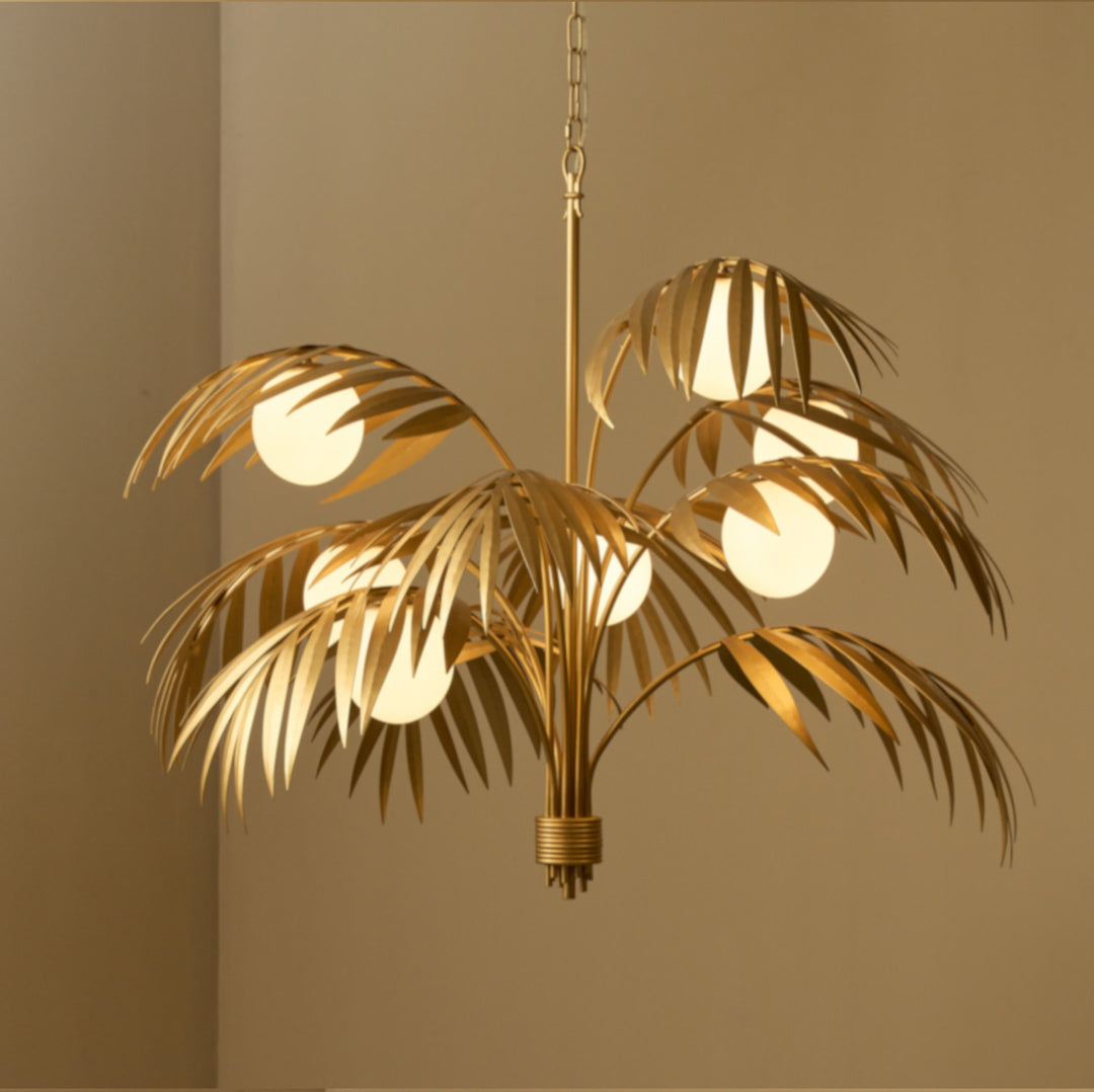 Tropical elegance that casts enchanting shadows from its molded metal fronds.