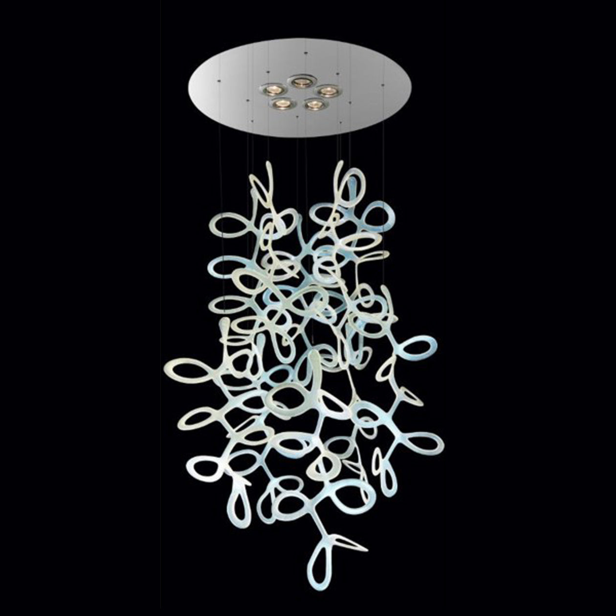 This lighting fixture has a unique design typical of its creator Vito Selma. The pieces snap open at just a touch so the owner can create the pattern. The structure can be totally opened for a star-like effect or some parts can be left closed for more variation. The warmth of wood adds to the light’s beauty. No two shades are exactly alike, which is typical of a handmade product and contributes to its beauty.
